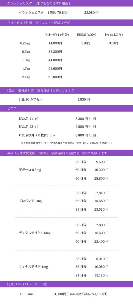 施術料金表